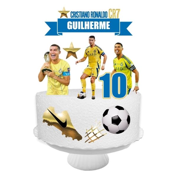 ⚽ Topo de Bolo Personalizado – Cristiano Ronaldo CR7 (Guilherme, 10 anos)